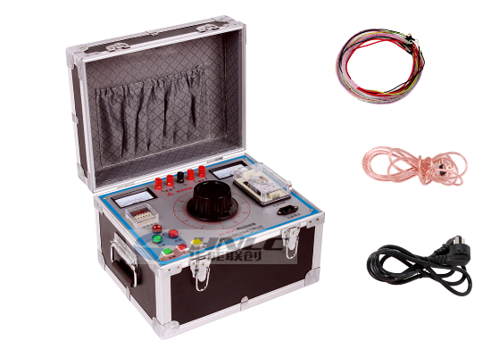 4、具有0.75倍電壓換算,方便測試氧化鋅避雷器,輕輕一按無須計算。本儀器控制箱上有75%的電壓功能鍵,在做避雷器試驗時,當電流升到1000uA時、就按下0.75UDC--1mA的按鈕,這時電壓表、電流表所顯示的值就是75%的數據,做完后應立即將調壓電位器回到零位,并應立即按綠色按鈕,切斷高壓并關閉電源開關,再做其它的試驗。